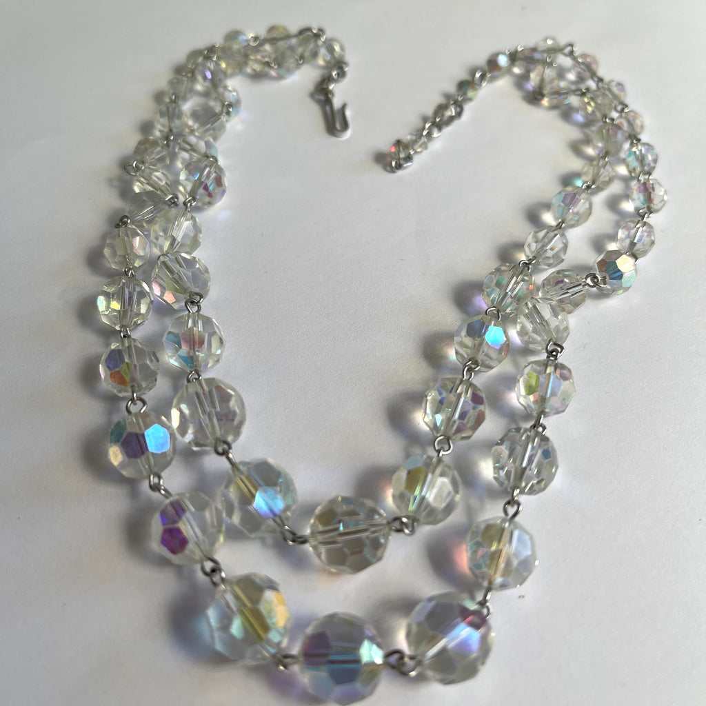 Faceted Double Strand 50's Vintage Crystal Bead Necklace & Earrings
