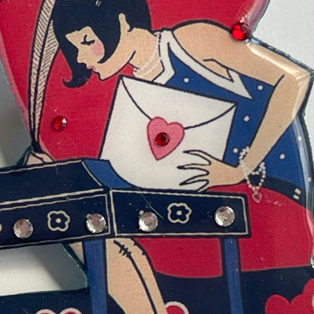 Lady With A Letter Hand Crafted Cat Walk UK Brooch