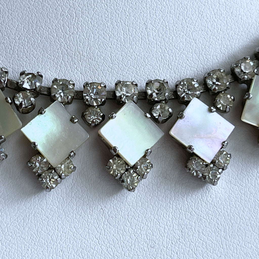Mother of Pearl & Rhinestone Vintage Necklace