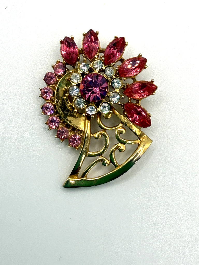 Pink Rhinestone Vintage Brooch