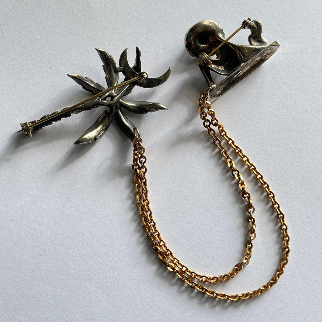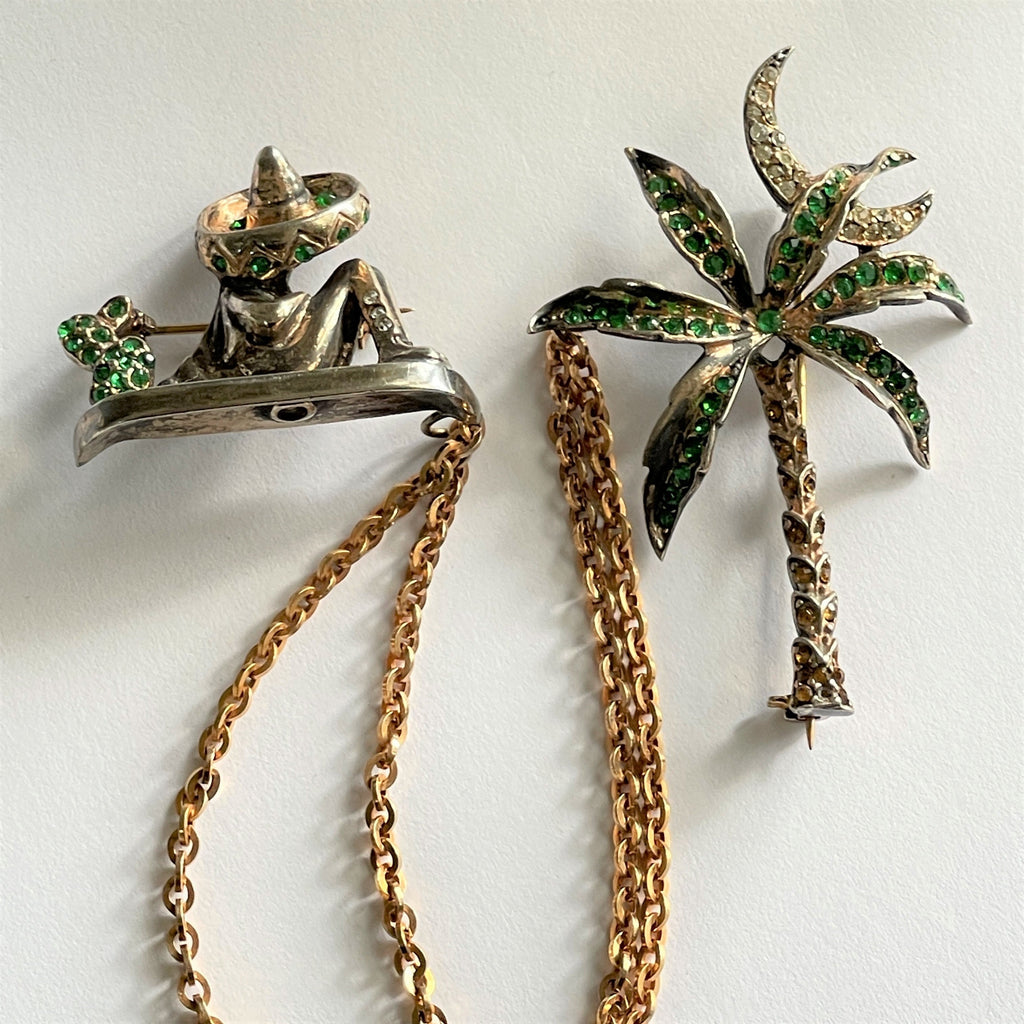 Rare Mexican Palm Tree Double Brooch Pins 1950's