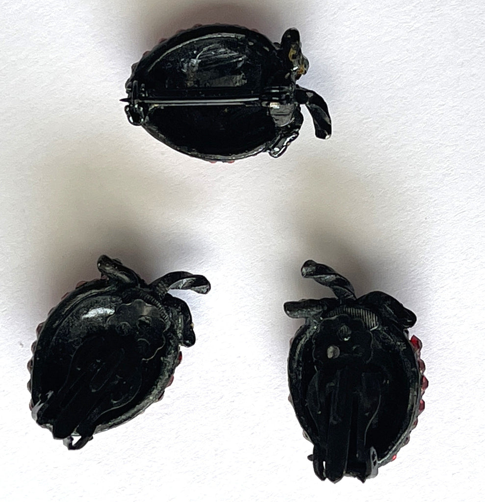 Strawberry Rhinestone Vintage Brooch and Earrings