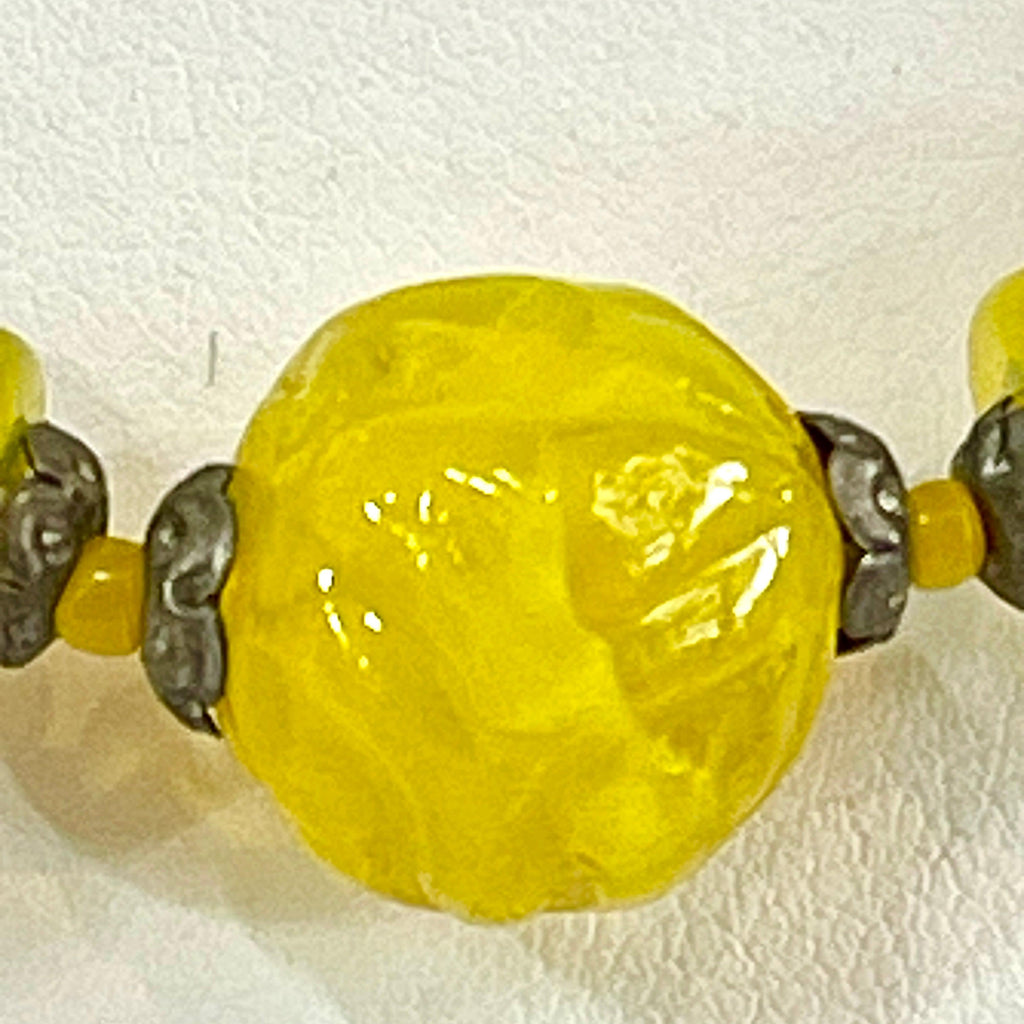 Vibrant Yellow Czech Glass Bead Vintage Necklace