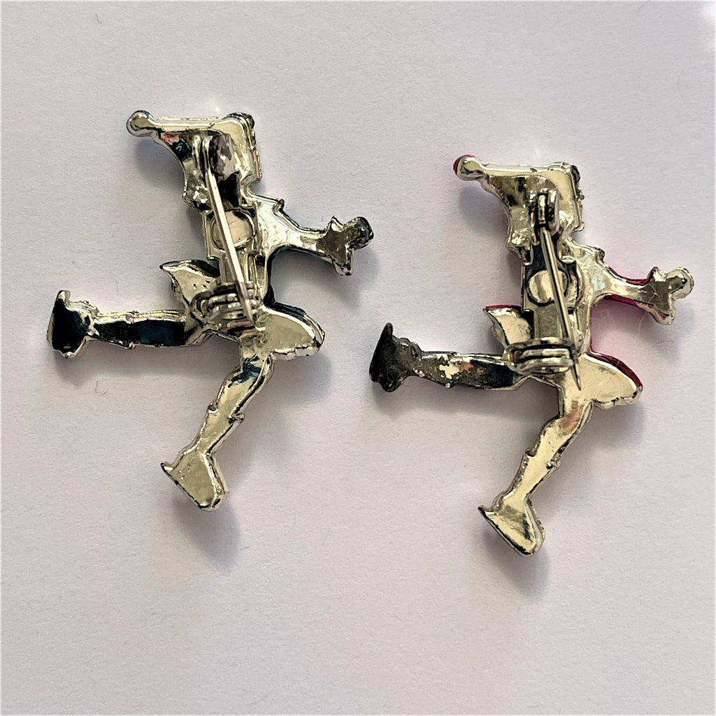 Scatter pins- 1950's.........a cute pair of skaters - a little wear commensurate with age, but a true piece of nostalgia. Gift boxed for giving. Overall measurement of each one is 3 1/2cms x 2 1/2cms. True cute vintage ....wear one or wear them together. Gift boxed by Vintageonline.