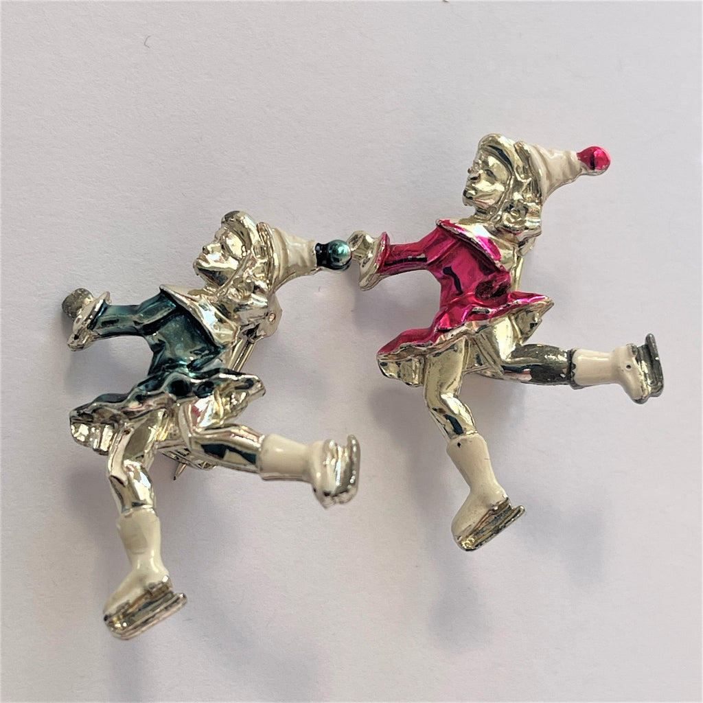 Vintage 1950's Skating Pair Brooches