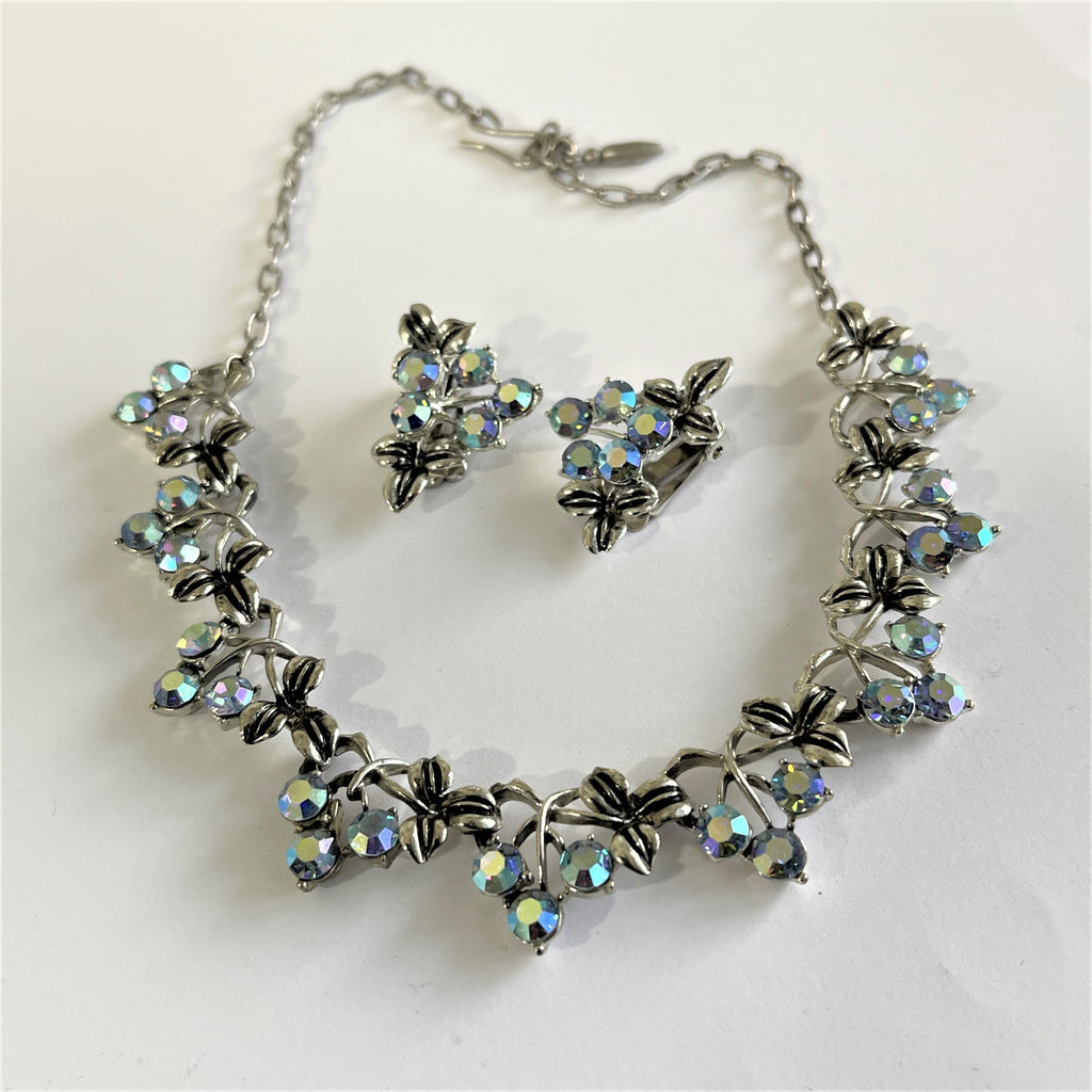 Vintage 60's AB Rhinestone Necklace & Earrings