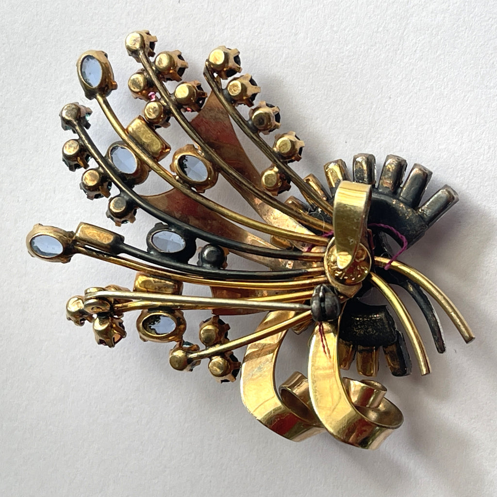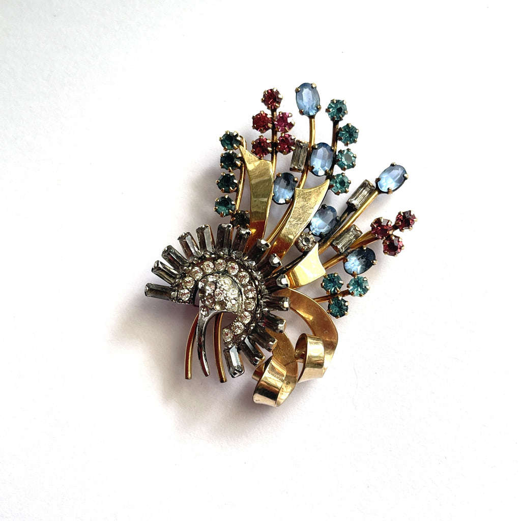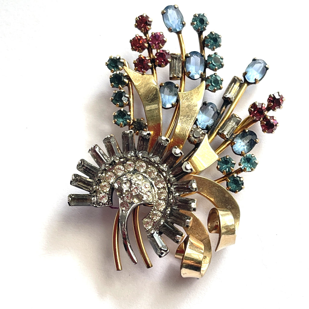 Multi Coloured Rhinestone Vintage Mid Century Brooch 12K