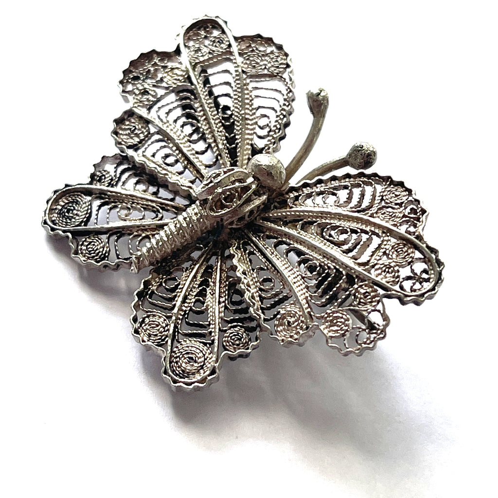 Silver Filigree Mid Century Butterfly Brooch