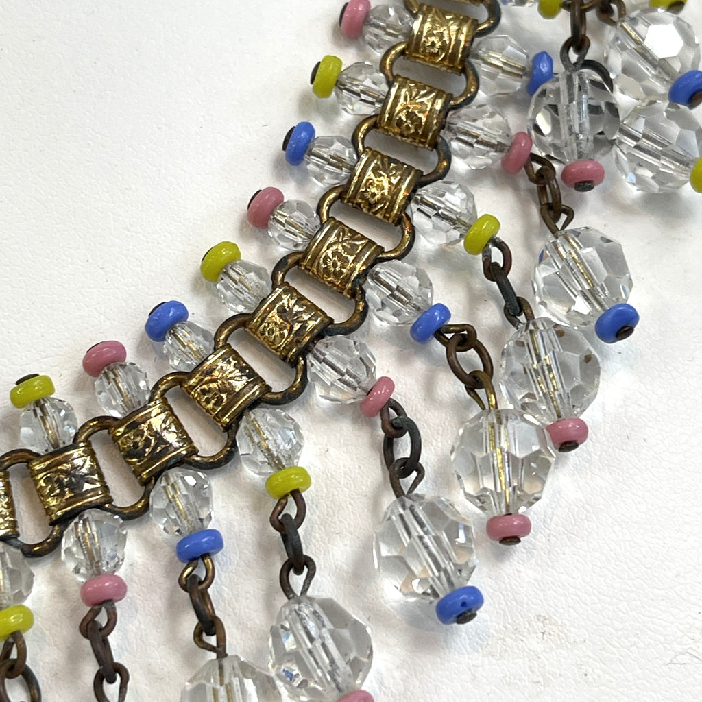 Early Mid Century Crystal Bead Book Chain Necklace