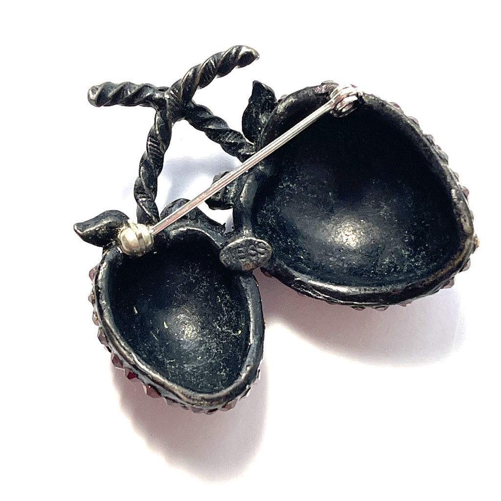 A twinkling cherry red rhinestone brooch from the 1960's and from the costume jewellery company Weiss. Measuring 4cms x 4cms, and in excellent condition. Japanned back with a firm roll over clasp, and the Weiss signature. The Weiss company based in New York, were known for their high quality jewellery, and their vintage pieces are highly collectable today. Gift boxed by Vintageonline.